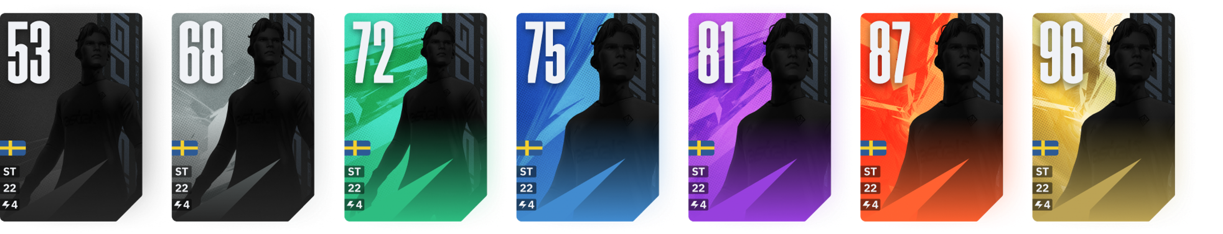 GOALS features seven rarity levels based on the overall rating of a player card: